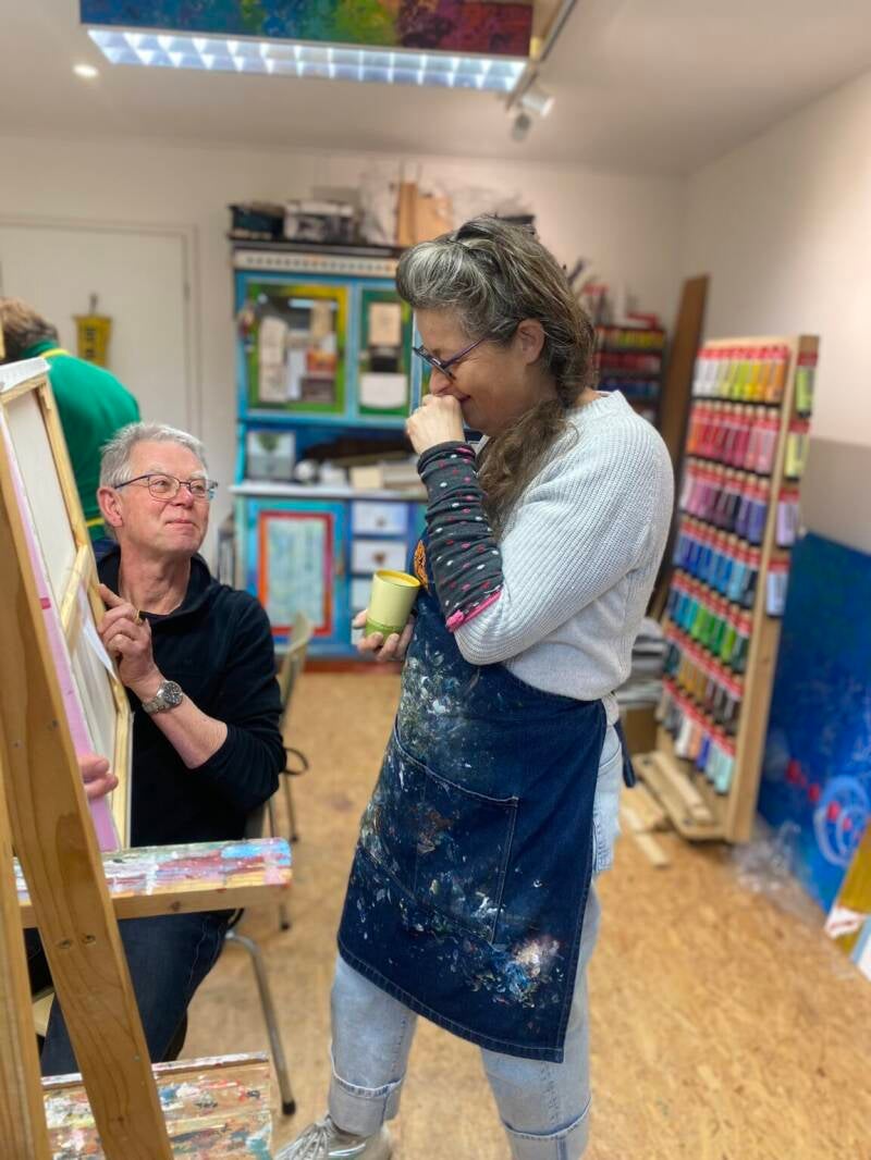 Lijkt het je leuk om samen iets bijzonders te doen? Je kunt ook met vrienden of familie eenmalig een schilderij maken – een originele en gezellige activiteit waarbij je samen iets moois creëert én een blijvende herinnering overhoudt. Daarnaast biedt Sigrid een gevarieerd aanbod aan workshops, dus er is altijd wel iets passends te vinden voor een feestje of een leuk uitje.